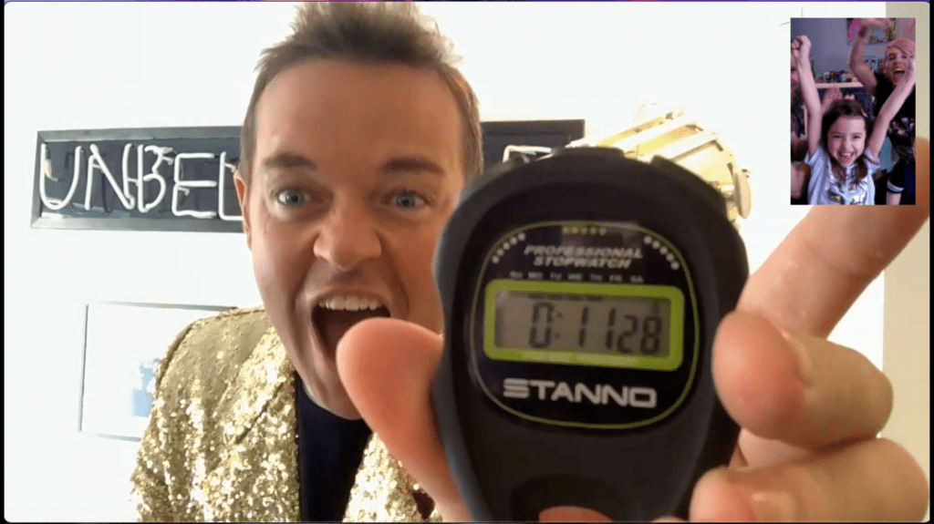 This was almost as surreal as the previous few days! We were up at 5am as Mila-Rose and Alfie were so excited! Presents were opened, lots of food/sweets were consumed and we even had a little street party thanks to a visit from Louby Lou! Alfie then had a virtual party with our family and friends, he absolutely loved it! During the party I had a phone call from a number I didn’t recognise, I rang it back later it was only Stephen Mulhern! What a lovely guy and true to his word! I explained that Alfie had been up since 5am and had a lot of excitement the last few days and he just said I’ll FaceTime you whenever is best for you. He didn’t have to do that but he did and we played the Stopwatch game on Sunday morning. He was just amazing with Mila-Rose and Alfie! A real down to earth guy who just wanted to do something special for our family.